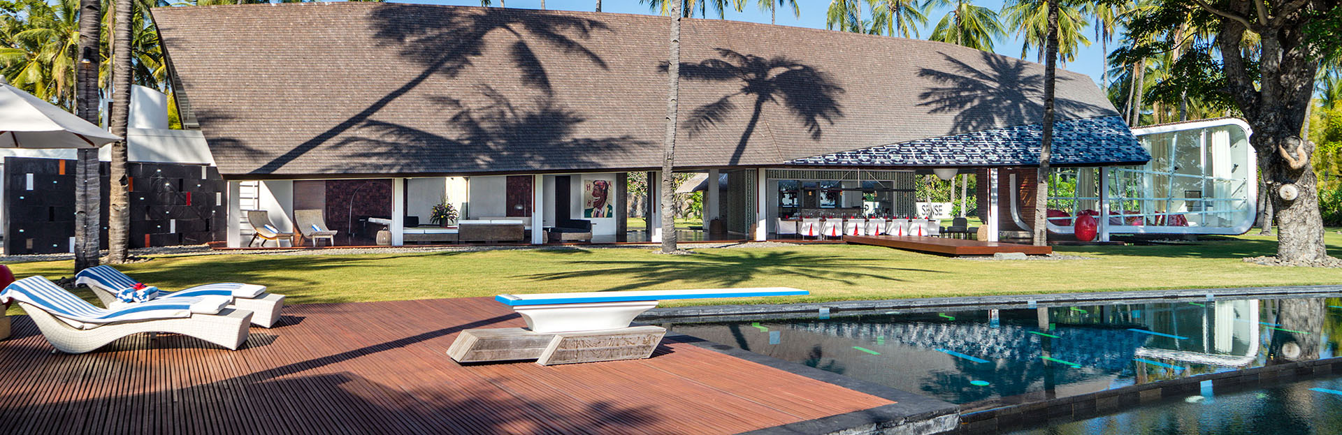 This is tropical living and barefoot luxury at its very best; a place where guests can truly escape. Villa Sapi is secluded and lusciously private but by no means isolated; prestigious neighbours include the Sire Beach Golf Club, Hotel Tugu and The Oberoi, and the coral-fringed Gilli Islands, with their superb dive sites, are just a short boat ride away.